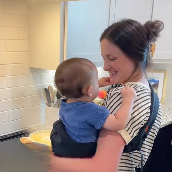 El KOA Sling está pensado para trayectos cortos y momentos de "upa" frecuente. Al distribuir el peso en diagonal por la espalda y el hombro, libera la tensión de tus brazos y muñecas. Si planeas caminatas de varias horas, te recomendamos alternar el hombro de apoyo.